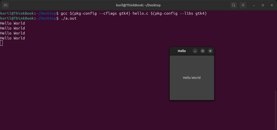 gcc $(pkg-config --cflags gtk4) hello.c $(pkg-config --libs gtk4)